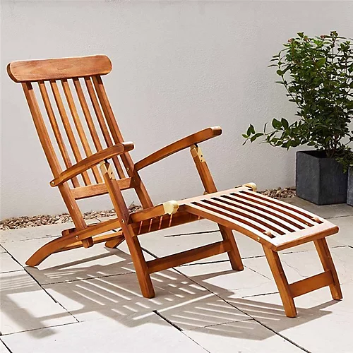 Offering a natural rustic charm to patios and poolside alike our teak steamer chairs are a timeless classic. The Bantham hardwood steamer chair is long-lasting and maintenance-free with adjustable backrest positions for added comfort.
