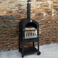 Livingandhome Black Portable Pizza Oven With Pizza Stone And Chimney 35cm W X 78cm D X 74cm H