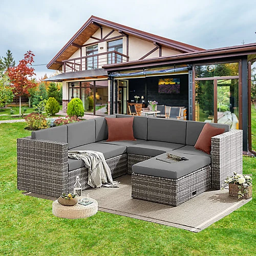 - HIDDEN SPACES, THOUGHTFUL FEATURES Transition between a 5 seater to a 6 seater by converting your coffee table into an additional seat or moveable ottoman, giving your guests the opportunity to have their feet up. Discover the hidden storage space within your table, and hide away your extra cushions and blankets. The adaptable set that will suit any outdoor space.