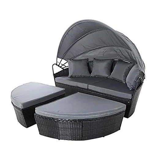 - PRODUCT DETAILS The set includes; 4 corner seats, 4 back cushions and 1 canapy with base. Furniture arrives flat-pack in 3 separate boxes and will require assembly. Assembly of the set is very easy and a full instruction manual is provided with the purchase. The maximum weight allowance for the whole bed is up to 300kg. Dimensions are approx in cm: (When extended) – 180 x 175 x 146 cm (LxWxH)