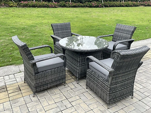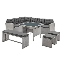 This deluxe PE rattan dining set is a great addition to patio or garden, made of high quality PE rattan and durable galvanized steel construction for sturdiness and long lasting.Durability ,and can be put outdoor all year round.