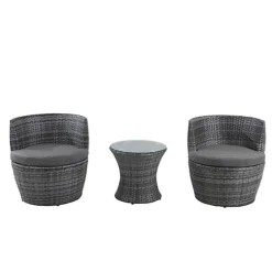 3PC Rattan Bistro Set Outdoor Garden Patio Furniture In Grey With Cover