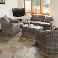 4 Piece Corner Charcoal Grey Rattan Luxury Garden Furniture Set