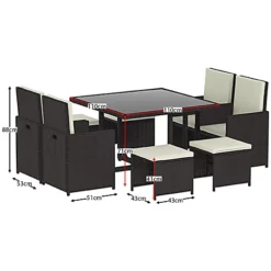 Garden Vida Cuba Brown 8 Seater Rattan Garden Outdoor Bistro Set