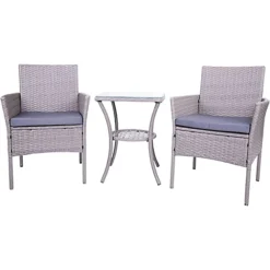 Outsunny 4Pcs Patio Rattan Sofa Garden Furniture Set Table With Cushions Grey
