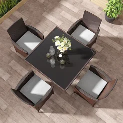 Outsunny 3 PCS Outdoor All Weather Rattan Dining Sets Furniture Backyard Garden