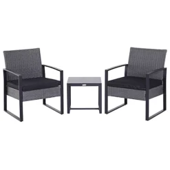 Outsunny 3 Pieces Rattan Patio Bistro Set 2 Chairs Coffee Side Table Grey