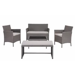5 Piece Rattan Garden Lounge Set Outdoor Patio With Bench & Table , Grey