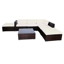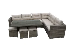 Furniture One Rattan Effect Nature Rattan 9 Seat Corner Sofa Set NO ASSEMBLY & ALUMINIUM FRAME