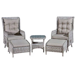 Oseasons Majorca Rattan 2 Seat Recliner Tea For Two Set In Dove Grey With Stools