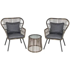 Furniture One Rattan Bistro Set Furniture Grey 3 PCs Patio Weave Companion Chair Table Set 2 Seater