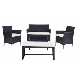 Maya 5 Piece Rattan Garden Lounge Set Outdoor Patio With Bench & Table, Black