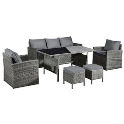 Oseasons Fiji Rattan 7 Seat Lounge Dining Set In Pewter Grey