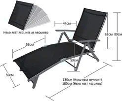 2 X Textoline Zero Gravity Reclining Garden Chair Sun Beach Lounger Recliner Outdoor Black