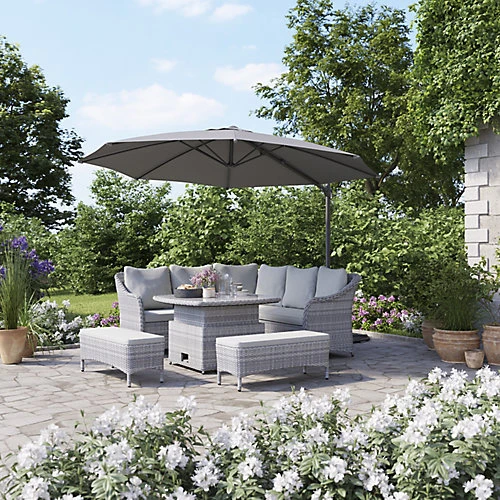 The elegant Hamilton furniture range features deep seating for maximum comfort. This 8 seater corner set includes a square height adjusting dining table, ensuring versatility for all al fresco needs. It is made of 8mm double half round wicker over a rust-free aluminium frame that is easy to maintain. Complete the look with the Hamilton range.