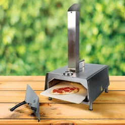 The Juno Pro 16 Pizza Oven is a portable outdoor pizza oven that allows you to cook fresh stone-baked pizza in just 60 seconds. This pizza oven has a built-in heat gauge thermometer and push button ignition, making it easy to get started on your pizza party.