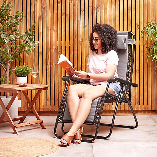 Ready for the most comfortable lounging experience of your life? Meet the padded reclining zero gravity chair from VonHaus. Designed to fit in with most types of outdoor or patio chairs, this deluxe reclining garden chair couldn’t be more comfortable. Built to last – the sturdy powder-coated steel frame is covered with a durable and hardwearing textoline padded fabric in classic grey.
